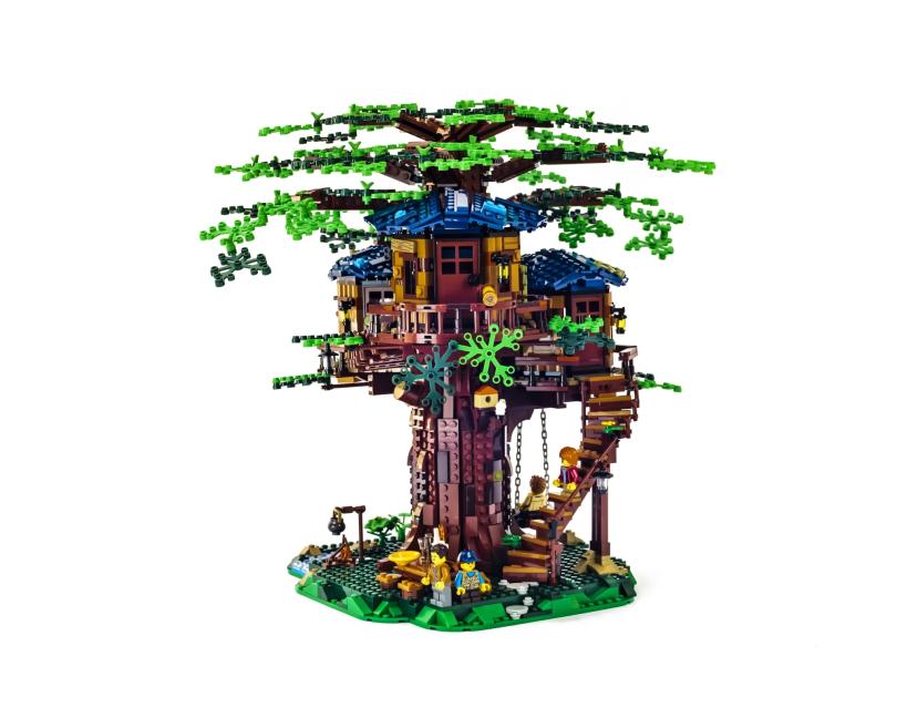 Wanneer je iets met het hele gezin wil bouwen is dit de kans! Ga samen op avontuur met de boomhut van LEGO® Ideas. Een boomhut als deze heeft u nog nooit gezien. In deze boomhut zijn er 3 hutjes gemaakt en omgebouwd tot slaapkamer, badkamer en kinderkamer. In de kinderkamer is een schatkaart waarmee je op zoek kunt gaan naar de schat. Kun jij hem vinden? Aan de boom zit een leuke schommel en tal van andere details zijn verwerkt in de boomhut. Vind je een boom met herfstkleuren ook mooi? Geen probleem, je kunt hem namelijk aanpassen met groene bladeren of herfstbladeren. Pas de boomhut aan naar jouw favoriete jaartijd! Bij de set zijn 4 minifiguren toegevoegd zoals een vader, moeder en 2 kinderen. Ga voor deze set snel op avontuur en huur de boomhut bij de Bouwsteen shop.